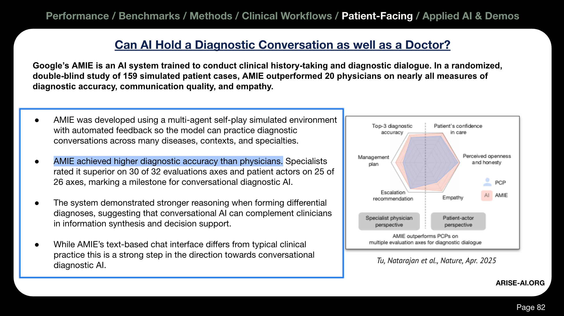 My intuition is that the biggest gains will come from clinicians delegating components of the medical history to AI agents. Anyone who has done primary care will tell you that history-taking comprises a substantial fraction of time per visit in the outpatient setting.