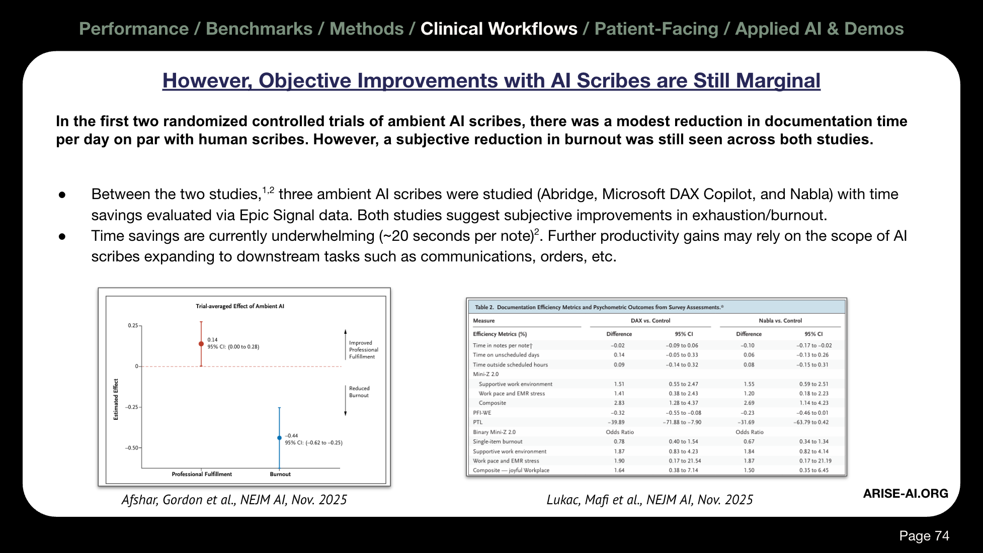 I strongly recommend the report to anyone with an interest in the subject of AI applications. There's lots of interesting pearls here, including counterintuitive findings around how much time AI scribes are actually saving: